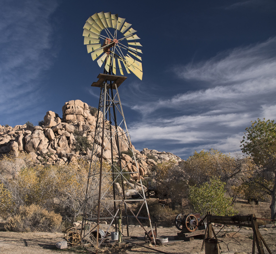 Windmill on Keys Ranch at Joshua Tree National Park. Harnessing the Wind.