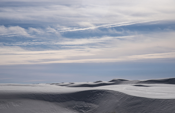 The snow white sand dunes against a blue sky. Waves of Sand.
