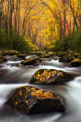 An incredible display of autumn color on a beautiful creek in the Smoky Mountains.