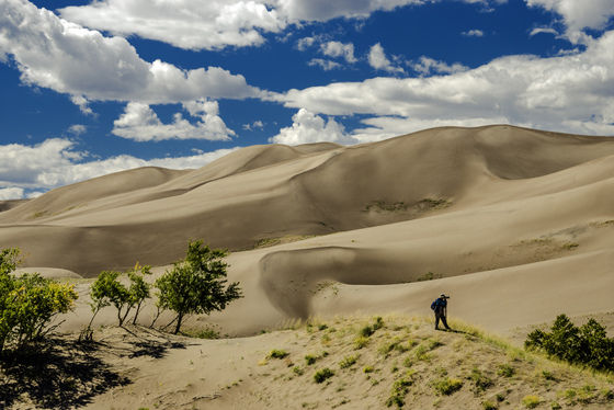 Great Sand Dunes: I was fortunate enough to go to the Great Sand Dunes National Park and Preserve in September 2018. Lucky me, I was able to capture a fellow photographer with the dunes in the background. The photograph was taken with a Nikon D800 camera and a 28-300mm Nikkor lens.
