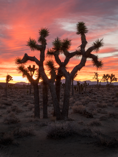 Spectacular sunrise with Joshua Trees at Lee Flat.
