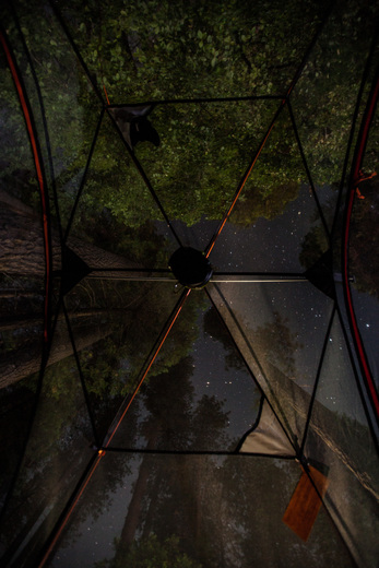 This photo captures the sleeping view from our tent, where we spent the night in Yosemite Valley before starting the Snow Creek Trail to North Dome. The view of the giant trees towering above our mesh tent, speckled by stars in the sky, was beautiful. I feel this view perfectly captures why sleeping outside is so amazing.