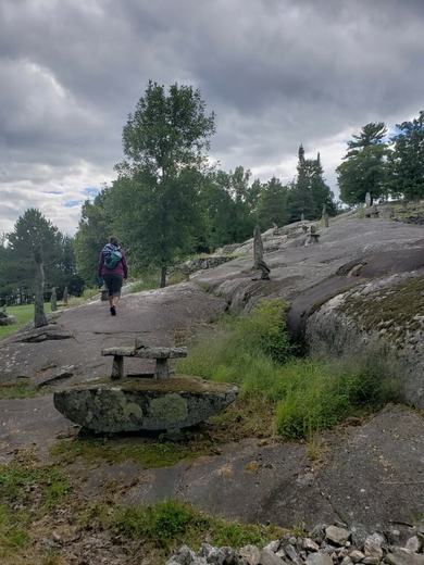A hiker explores the rock formations at the Ellsworth Rock Gardens in Voyageurs National Park.