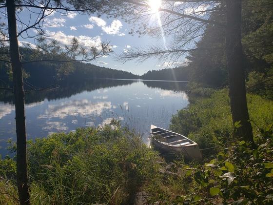 A canoe rests at a campsite in a remote region of Voyageurs National Park off of Warclub Lake.
