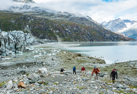 Hiking along side Lamplugh Glacier