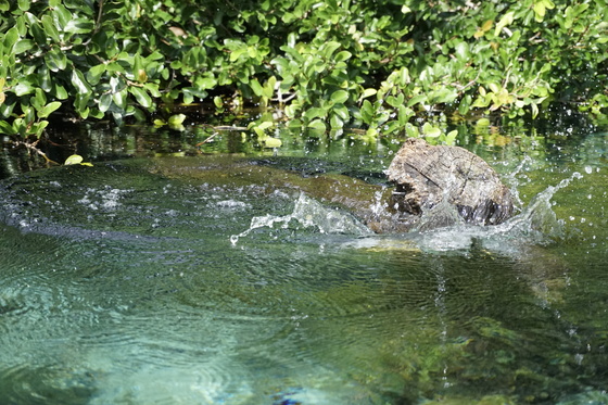 I tried to capture a photo of a turtle sitting on a stump, but i got too close and it jumped into the water.