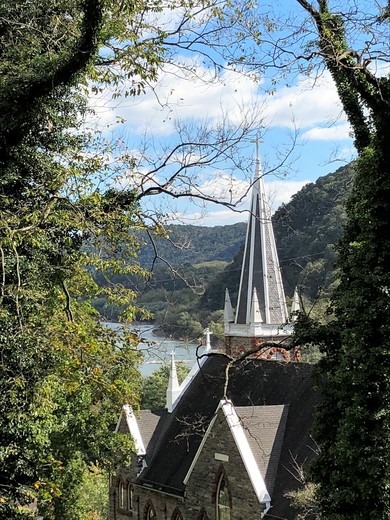 Potomac River view from the hill alongside St. Peter's Church at Harpers Ferry NHP. St. Peter's was originally built in 1833 on this site and was the only church not attacked during the civil war. The church was later taken down and reconstructed in 1896.