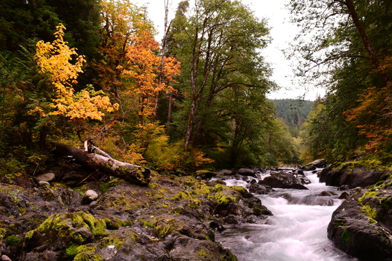 Olympic National Park was such an amazing park. It seems so big and has so many different places to see that it almost seems like multiple parks in one. I was there when there were some Fall colors starting and they really popped! This stream was so beautiful in combination. I think there were people downstream looking to see if they could spot fish, too.