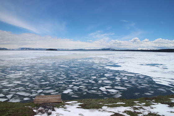 Geometric ice designs in Lake Yellowstone, May 2017