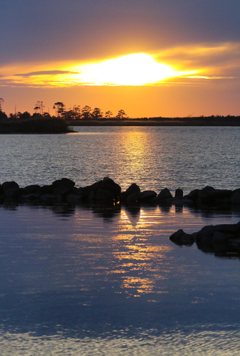 Plum Gold - The sun setting through the clads at Back Bay Wildlife Refuge