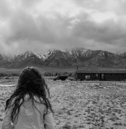 My sister looking up to the mountains, thinking of the story that this place tells.