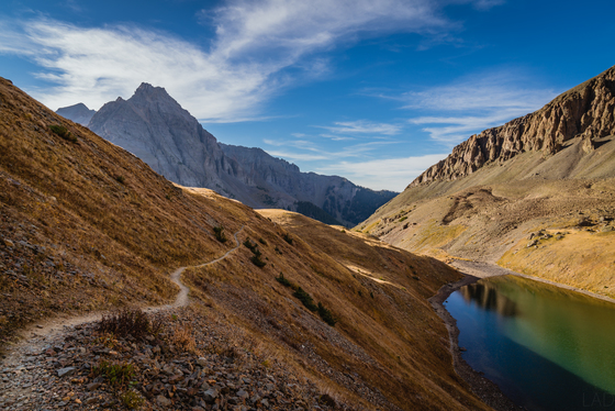Over 8 miles round trip + elevation gain of ±2500 feet + 50-something lbs backpack—I was also looking for another kind of Colorado colors/sceneries/adventures than ‘just’ its famous fall colors. And I found lovely places! I set up camp, then hiked a bit further up to scout and look for sunset spot(s), then I found this composition when I looked back on the trail.