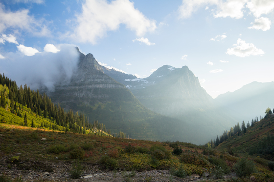 Fog clouds begin to spill over the shoulder of Mt. Oberlin.