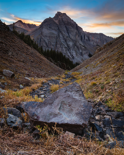 First pre-sunset of my first backpacking trip was quite an amazing feeling! (Despite the weight and reduced hiking speed to an average of 1 mph). Seen jutting up the sky in the back is the Dallas Peak.