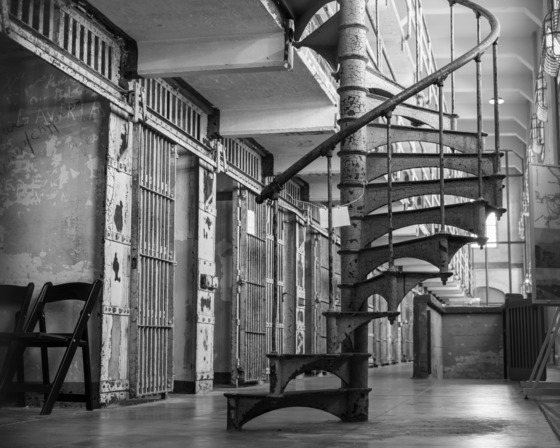 Row of cell blocks in Alcatraz Prison, part of the Golden Gate National Recreation Area.