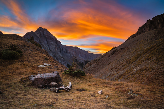First sunset of my first backpacking trip was quite an amazing feeling! (Despite the weight and reduced hiking speed to an average of 1 mph). Seen jutting up the sky in the back is the Dallas Peak.