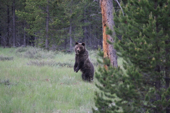 Surprise encounter with a Grizzly in Yellowstone. He stood up as I rounded a corner and I snapped a shot before we both took off in opposite directions.
