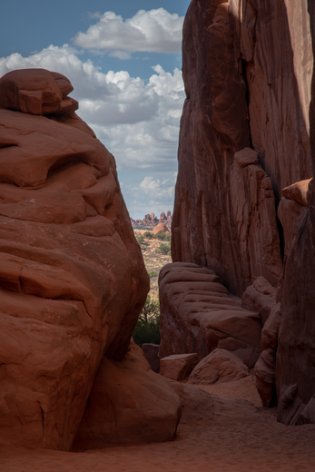 While leaving Sand Arch trail, you come upon this hidden gem of a view.