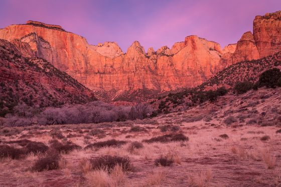 Tagged: zion national park towers virgin formation mountain shuxu cliff bush predawn pink glow canyon overlook rock