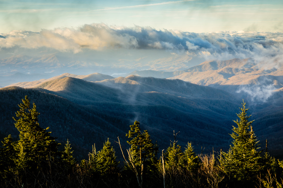 Tagged: great smoky mountains national park clingmans dome peak ridge layer shuxu haze fog aerial perspective atmosphere sunset summit tree hill pine douglas dusk north carolina tennessee