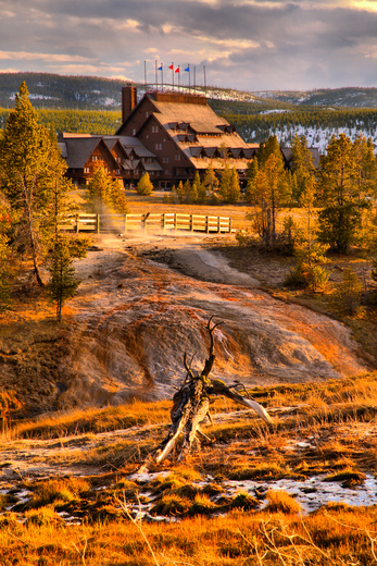 A Wild Thermal Landscape Leads Up To The Visitor Center At Old Faithful In The Upper Geyser Basin At Yellowstone National Park In Wyoming.